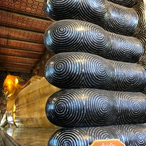 ワットポーでは仏像の大きさにも驚きましたが、足の裏の螺鈿の美しさに魅せられます。