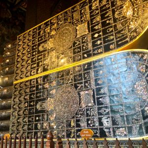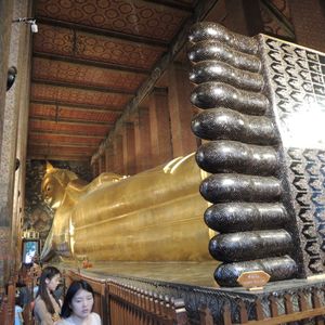 ワットポーの巨大な大寝釈迦仏は迫力がありました。柱がたくさんあるので隙間から写真を撮る感じです。後ろ側に行くと108の壺があります。20バーツで硬貨を買います。硬貨の枚数がピッタリになるのかは運次第みたいです笑