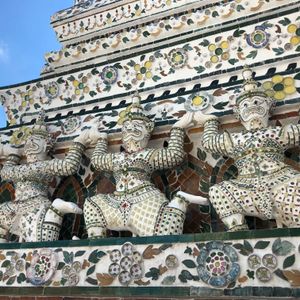 ワット・プラケオでは寺院の金色や色とりどりの装飾にまず感動。本堂内ではタイで一番重要とされるエメラルド仏を拝観してパワースポット感を体感しさらに感動。でも本堂内は撮影禁止のためこの感動をお土産写真で見せられないのが悔しいです。渡し船にてワット・アルンへ大仏棟にまたまた感動。ワット・ポーでは寝釈迦仏の大きさと足の裏の装飾にビックリ感動!