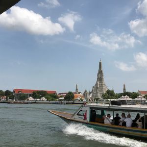 王宮〜ワット・アルンへ短時間ですが、チャオプラヤー川を渡る船にも乗れて、暑い中、川風がとても気持ち良かったです。最後に訪れたワット・ポーでは、のんびりとご祈祷の方法を教えていただいたり、本堂でまったりと過ごし、とても神聖な気持ちになりました。タイの歴史や仏教のことなども詳しく教えていただきました。