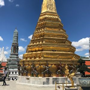 私は二度目のバンコクでしたので、ほぼ同じコースでしたが久しぶりなので再確認出来ました。王宮の大きさもさることながら、雨期とは思えない快晴で青い空と白い雲そして王宮の金色が一層映えて素晴らしかったです。兎に角暑いので長袖がおススメです。半袖でしたので腕が真っ赤になってしまいました。