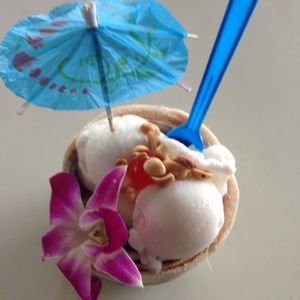 エンジンボート降りた場所にある、ココナッツアイス、揚げバナナを食べました。