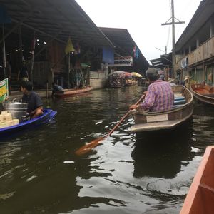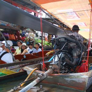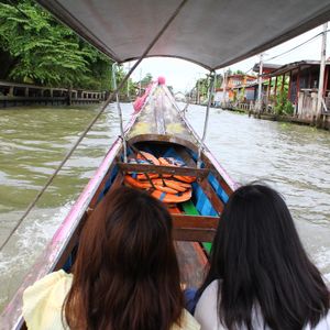 今回、初のタイ旅行で、自力か悩んだ結果ツアーにしました。前々日の夜に着いて、1日タイを歩き回り移動などで頭をフル回転させた翌日だったので、迎えに来てもらえるのは楽チンでした。1時間以上かけバスで移動して、ココナッツファームでトイレ休憩、そして水上マーケット。ジェットボートは口コミで楽しいと書いてあり期待していましたが、まるでアトラクションのようで楽しめました。手漕ぎボートはゆっくりと動くのでそれもまた周りを見ながら楽しめました。船酔い等しやすいですが、大丈夫でした。ほぼ移動からボートから乗り物に乗ってのツアーなので、脚は疲れません。ツアーを織り込んだ旅のほうが楽で良いかもしれません。