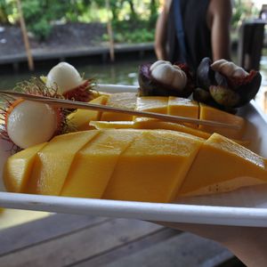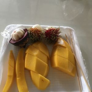バナナフライは20バーツでしたが、マンゴー、ランプータン、マンゴスチンの詰め合わせが100バーツで高いなと感じました。