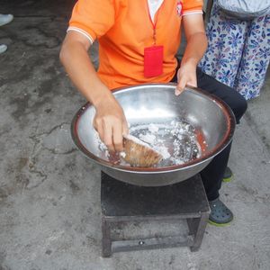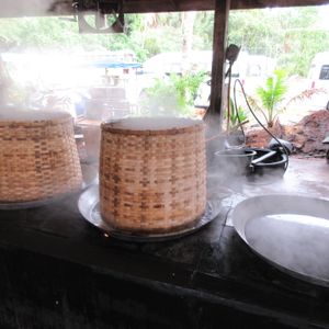 水上マーケットに行く前にココナッツファームで椰子の花から砂糖を作るところを見学しました、私はパームシュガーを利用しているので興味深いたいけんでした