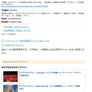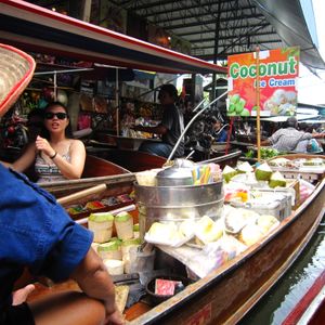 2度目のバンコクですが、念願の水上マーケットに今回行けました。熱気あふれる風景をこの目でおさめられて嬉しかったです。手漕ぎボードに乗るまで、車で1,5時間(途中ココナッツファームに寄ります)、モーターボートで20分くらいと多少時間はかかりましたが、ガイドさんも日本語が上手で退屈しませんでした。ありがとうございます。また次回もお願いします。