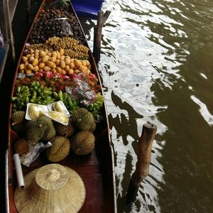 手漕ぎボートに乗りましたがボートがあり過ぎて大混雑でした。何も買いませんでしたが見ていてるだけでも面白いです。食べ物はココナッツアイスやバナナ揚げ、フルーツが売っていました。