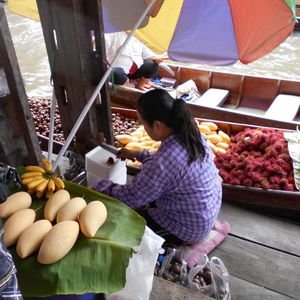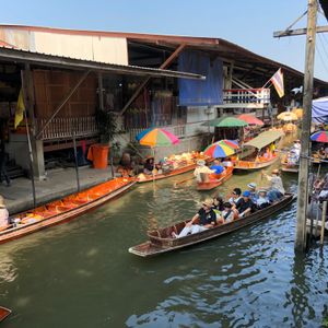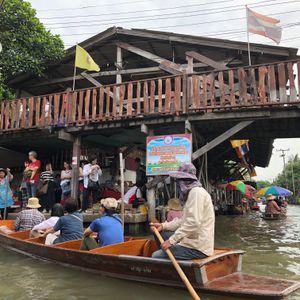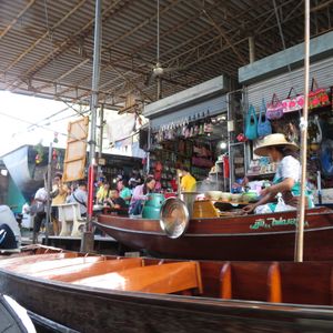 バンコク市内から2時間ほどのバスの中も快適でした。バスを降りてからは水上をエンジンボートで行くのですが、風を顔に感じながら川沿いの地元の人の生活感を感じながらとても快適にマーケット会場まで行けました。ガイドさんも丁寧にいろんな話をしてくれてとても良かったです。一人で参加しましたが、同じように一人で参加されてるかたもいて、全然寂しくありませんでした!