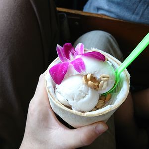 その後の自由時間はココナッツアイス(50B)を食べたりウインドウショッピングをし、1時間ほど過ごして車に乗り込みサイアムで解散しました。