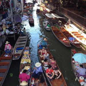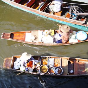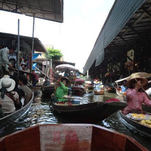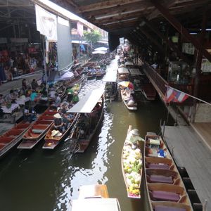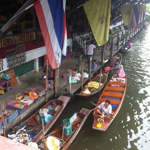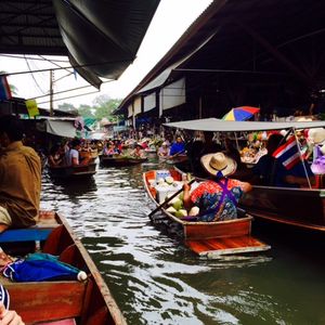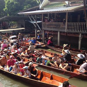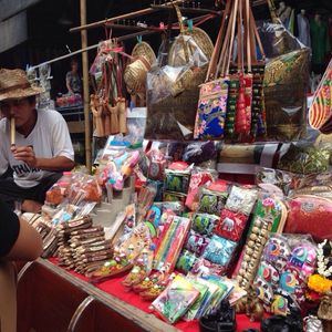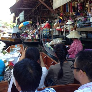 船が楽しいです。実際に水上マーケットにいる時間は短く、小舟に乗ってから売っているのは日本人が好まないような土産物や他より高い果物なので買い物する感じではありませんでした。