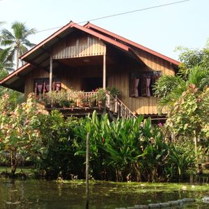 途中に原色の仏像があったり水上に建っている家の外観がいかにもタイらしくて写真撮影に夢中になっていると