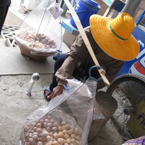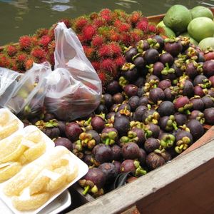 フルーツはおいしいです。バンコクの市内やそこそこのスパーを覗いてもフルーツの種類が時期的に少ないのですが、さすが観光の水上マーケット、手漕ぎボートの乗り口で売っているフルーツは、なぜかドリアンも食べごろが売られていましたし、マンゴーも端を切って熟れ具合を見てから、食べやすくカットしてくれる細やかさです。是非、食べてみてください。おいしいです。
