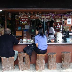 8:40ココナッツファームへ到着。高速道路と国道を1時間以上走って漸く~トイレは5TBとられるので、我慢できる人はスピードボート下車後のおみやげ売り場なら無料。ちなみにバンコク市内でも2TBとられる所が多いので免税店等綺麗で無料の所でするベシ。