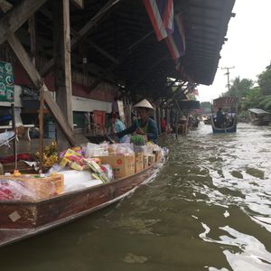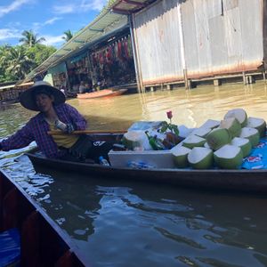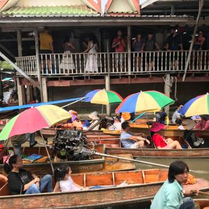 水上マーケットのみの半日ツアーに参加しました。迎えの時間も予定通り。ガイドは日本語の話せる現地の方。必要レベルの意思疎通は十分に測ることができ、程よい干渉具合だったので自分たちのペースでツアーを楽しめました。ココナッツファームはそんなに色々ある訳ではないが、ローカルの人が食べてたココナッツたっぷりのグリーンカレーがとても美味しそうでした。お手洗いはトイレットペーパーが有料なのでティッシュ持参がおすすめ。メインの水上マーケットは雨でも十分楽しめました。エンジンボードはすごい迫力でジェットコースターのよう。これに乗るだけで十分ツアーが楽しめます。マーケット自体は観光客ばかりですが、異国の雰囲気が堪能できます。船上で食事もでき、カオニャオマムアンが美味しそうでした。