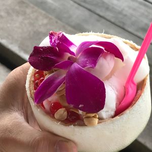 私的にはエンジンボートに乗ってから、手漕ぎボートに乗り換えて大正解!エンジンボートで水上マーケットに向かう気分が一気に盛り上がりました。沢山のボートが行き交っていましたが、ぶつかりそうでぶつからない!スリル満点。ディズニーランドのアトラクションみたいで楽しめました。マーケットに行ってからはお店を眺めつつ、他の船とぶつかり合いながらまったりとした時間を過ごしました。お店の人も慣れているのか、買わないとみるとあっさりとしていました。下船してからは時間まで水上ボートで売りに来るココナッツアイスや出来立てのフライドバナナを食べて満足。ちょっとした異国情緒を体験出来ます。