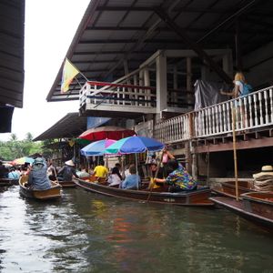 半日で行けるので良かったです。水上マーケットは、別料金を支払わないと手漕ぎボートに乗れず結局、全員お金を払ってボートに乗りました。なのでマイナス1です。