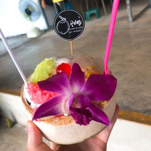 待ち合わせ時間までの間、ココナッツアイスやココナッツパンケーキを食べたり、蛇と写真を撮ったりしました!