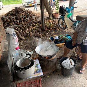 最初にプランにはありませんでしたがココナツを使ったお土産やさんにも寄りました。トイレ休憩位の滞在時間で、すぐに水上マーケットへ向かいました。