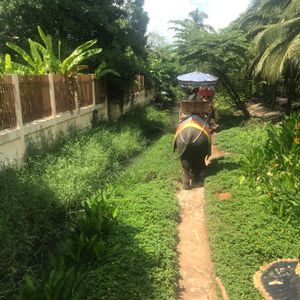 サクサクと像に乗せられてココナッツの畑っぽいところをぐるっと一周。もっと乗っていたかっです。でも写真を撮ってくれて、記念にはなりました!2人で40バーツ像乗りにチップを渡して、何にも言われなかったのでそのまま降りました。