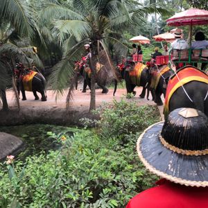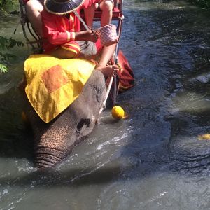 家族旅行で利用しました。子供たちは初訪タイで、像のりを楽しみにしていました。水の中にジャブジャブと入っていくときは、大騒ぎでした。アユタヤの像にも乗りましたが、こちらの方がずっと素晴らしいです。 水上マーケットは大混雑でお買いものどころではなかったのが残念でした。途中のココナッツファームはココナッツ砂糖が予想外においしかったです。 エレファントビレッジだけ再訪問したいです。