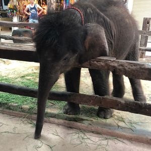 象の長い鼻に巻かれて体ごと持ち上げてもらい写真を撮って貰うコーナーがありました。
