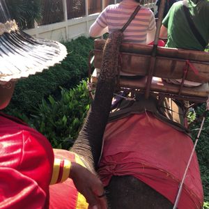 念願だった象乗り体験がしたくて参加しました。水上マーケットでは、追加料金がいりましたが、実際にボートに乗って、水上マーケットを体験し、とても楽しかったです。念願の象乗り体験では、途中で象使いの方が写真をたくさん撮ってくれて、大満足でした。(100バーツ払いましたが)