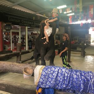 ゾウ乗り体験楽しかったです。主人はプラス100Bでゾウさんの鼻抱っこ体験しました。私もライオンと、触れ合い体験をプラス200Bでしました。ライオンは大人しく、調教の方に慣れていて安心です。蚊がいるので事前の虫除けスプレーをおすすめします