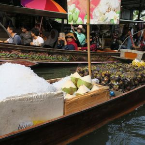 ココナッツファームはただの田舎のサービスエリアみたいなとこにあるお土産ショッピみたいなかんじでつまらなかったです。ぼったくるし。水上マーケットは良かったんですけどボートに乗る料金がツアー代に入ってなくてツアーガイドさんに乗車料金200バーツと言われてここまできて乗らないのも嫌だし仕方ないので払いました。それゆえ200バーツもはらったのにツアーはボートの渋滞もあってすごく短くて全然水上マーケットのお店を回れなくて残念でした。