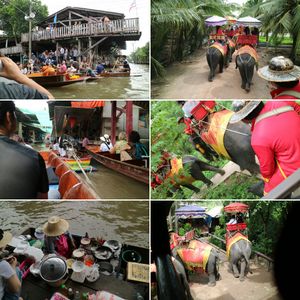 早朝からの少し長距離移動になりますが、混み方、団体移動を考えると、とても充実した半日を過ごすことが出来ます。象乗りは、ただ往復してくるだけでなく少しアスレチック感覚が入ってタイ髄一ともいうるかもしれません。単独で行くと入場料さえもボラれる世界です。 水上マーケットもツアーの口利きがあればこそで手漕ぎの舟に乗ることが出来ます。(行ってみると意味がすぐにわかります。)昼食は個人で店を探せる方は不用かもせれませんが、流れで食べる事が出来るので便利です。