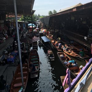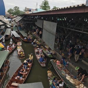 水上マーケットは見ているだけで楽しい!買い物は割高なので、ボートに乗るなどして楽しむのがおすすめです。