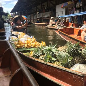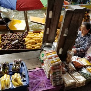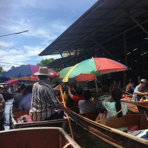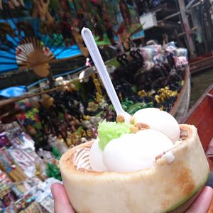 水上マーケットでは、なかなか団体だと回るだけになってしまい、商品購入まではできないかなと思いました。ガイドさんのおすすめのココナッツアイスは何とか船降りてからガイドさんに案内していただき無事に完食できました。おいしかったです。