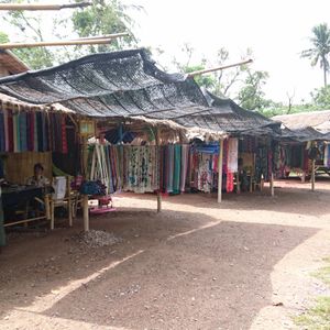 水上マーケットではオプションの手漕ぎボートとスピードボートの両方に申し込んだ。手漕ぎボートは水路の中のお店を眺めながら過ごすだけだったが(特に買いたいものがなかったので)、スピードボートは次の象乗り場の近くまで交通手段として利用でき、思った以上にスピードがあって非常に面白かった。象乗りは以前、アユタヤの近くで体験したことがあったが、今回のエレファント・キャンプは乗っている時間も長く、水の中に入るなど他より面白かった。また、象使いの男性たちの奥さんが首長族の女性らしく、象乗り場から首長族の村へオプションで行け、彼女たちの作った織物などが安価で買えて良かった。ココナッツファームと水上マーケットの土産物の観光地価格にうんざりしていたので、首長族の女性たちのお店が良心的すぎて正直申し訳ないくらいだった。もう少し首長族の滞在時間が多ければ良かったと思う。
