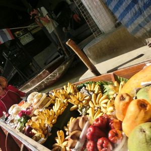 私たちは2人だけで乗せてもらいました。のんびりといろんな物売りのボートやお店の横を通過します。その際に物売りの人たちがせっせと勧めてきますが欲しくないといえばそれ以上は言ってきません。