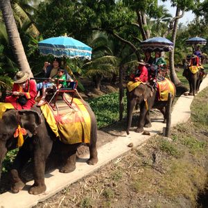 夏休みに参加しました。現地へいってから、直前の予約でしたが、問い合わせにも親切に対応してもらい、スムーズに参加できました。内容は、期待以上で、象のりは他でもしましたが、ここはたっぷり乗れて、ロケーションもタイの田舎の風景を満喫でき、チップも催促されることもなく、素朴で一番よかったです。ココナツファームも個人ではなかなか行かないようなところで、珍しかったですし、子供の自由研究のネタになりました。水上マーケットは別料金で手漕ぎボートに乗りましたが、のんびり買い物できて、良かったです。時間的には半日ですが、満足度は一日のツアーにも劣らないと思います。また参加したいです。