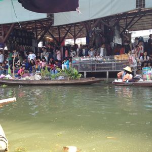 次は水上マーケットです。このツアーでは船の代金は含まれていませんので希望すれば別料金で乗れました。モーターボートと手漕ぎボート各200バーツ、両方なら300バーツで乗れます。私たちはせっかくなので両方体験しました。