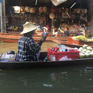 水上マーケットでは、船に乗るのに100バーツ払ったけれど、満足するくらい船に乗ることができました。そのあとのフリーの時間ではガイドさんオススメのご飯を食べたりしました。