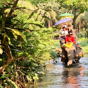 ゾウ乗りがしたくて、乗ってる時間が一番長いこちらのツアーに参加しました。想像以上にゾウの上は揺れます。ヤシの木の間を進み、水中に入っていくときはほんとにハラハラしました。