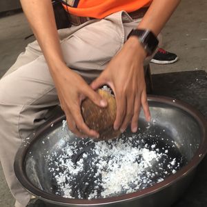 ココナッツファームでは、ココナッツファームの砂糖を食べて、実際にココナッツを作るところを実演してくれました。