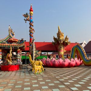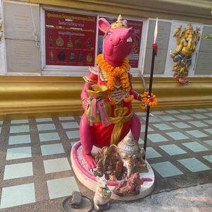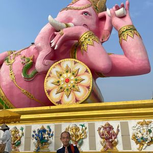 ピンクのガネーシャのお寺は、日本でいうと秘宝館やまぼろし博覧会のようなカオスな雰囲気で、荘厳なお寺という感じを想像しているとびっくりします。ガネーシャ以外にもわけのわからない、時に日本のアニメのフィギュアが乱立している場所です。往復にかなり時間をかけて行く場所なので、イロモノとして楽しめる方におすすめです。また人の少ない朝イチに行くので、ゆっくり楽しめ、ガイドさんにはタイのお詣り方法を教えてもらい、ガネーシャに金箔を貼る体験などもできました。ですが、朝イチなので周りの露天などはほとんどしまっています。