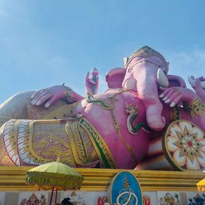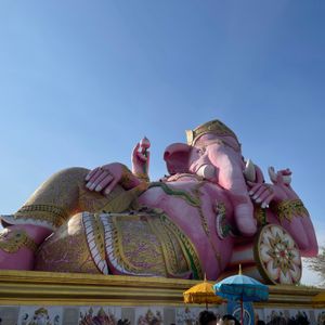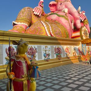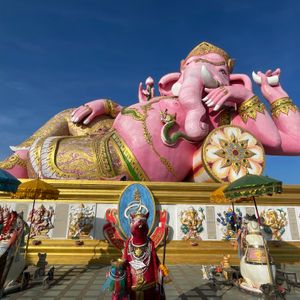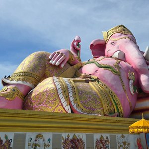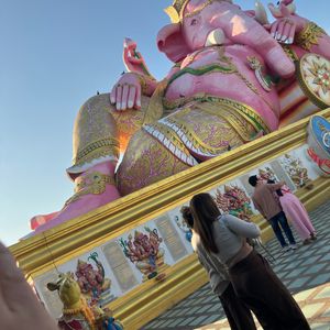 バンコクからバスで1時間半の所にある、ピンク色をしたガネーシャ像は祈願成就までのスピードが速いという事で、行ってきました。皆さんも、ガネーシャ像の周りにいるネズミ像の耳に願いをささやくと、叶えてくれるそうですよ。