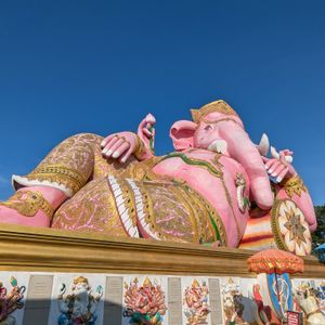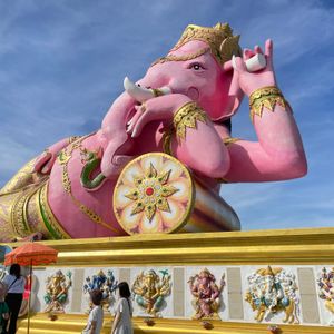 ガネーシャは観光客の少ない朝が狙い目です。市内から2時間弱かかりますよ。25年には立っているピンクガネーシャができるみたい、建造中でした。あ、トイレは少し汚い。ガネーシャ背中にあるトイレが1番きれ