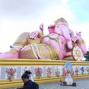 ワット・プローン・アカート、ワット・サマーンラッタナワラームのピンクガネーシャは見ごたえありますよ。ネズミさんたちへ願い事をしましょう。お賽銭も忘れずに!