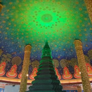 まずはワット・パークナムへ。靴を脱いで寺院に入って上に登る間、空調が効いていないのでとても暑いのですが、最上階まで登ると写真で見る印象よりもとても美しいお部屋に辿りつきます。