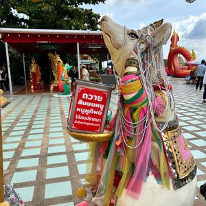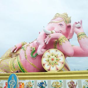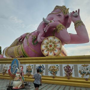 フォトジェニックなワット・パクナム寺院のほか、巨大なガネーシャ2カ所を見られます。1つはピンクガネーシャとして有名な、ワット・サマーン・ラッタナーラームで、もう1つは世界最大級のワット・プローン・アカートです。後者はガイドブックにあまり取り上げられていない穴場的スポットですが、大きさに圧倒されました。