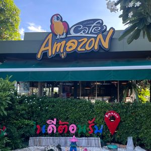 トイレ休憩で立ち寄ったところにAmazoncoffeeがあり、アイスカフェラテがとても美味しかったです。ナーさんが買ってくれたバナナの天ぷらも美味でした。