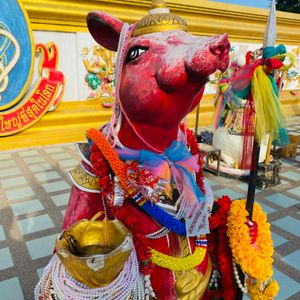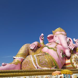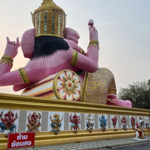 渋滞前に出発できて、お寺に着いてもまだ観光客が集まるには早い時間だったので、人混みにもまれずとてもゆったり見ることができました。お天気がよかったので、青空にピンクガネーシャがよく映えました。ピンクガネーシャの周囲にはヒンズー教や仏教由来の像の他に、なぜか日本でおなじみのマンガやアニメのキャラクターの像も多数あり、なかなかの不思議空間で面白かったです。