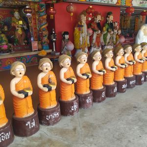自力で行きにくい&平日のバンコク市内の渋滞がひどいとネットで見たので日曜に参加。集合場所は社名の看板など掲げてくれているとわかりやすいかな。日本人スタッフの事前説明後乗車。ガイドがいないため参拝の方法がわからず周りの方の真似をしましたが間違っていたようで係の方に優しくご指摘を受けました。時間的にはあまり余裕がなくお店はいくつもあったけど見れなかった。暑すぎたので調度良かったのかも。謎の日本アニメのキャラクター像が数体…笑いました。ドライバーさんは優しく安全運転でしたよ。時間通り往復でき午後からも予定通り楽しめました♫