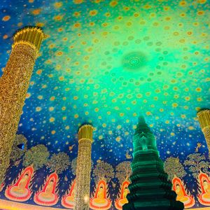 ワットパクナムはガイド本で紹介されているほぼイメージの場所でした。グリーンの天井画は他では見ることができないと思うので必見の価値ありと。