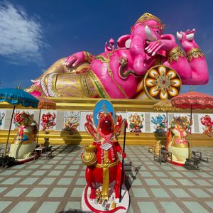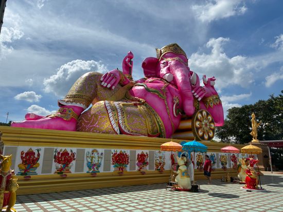 ピンクガネーシャ以外にも、水に浮かぶ蓮の花建物、3つの顔を持つ白い仏様、日本でもよく見るキャラクター達の像、白い牛を飼育してる小屋など、見所あるのでピンクガネーシャだけに時間を使いすぎないほうが良い!