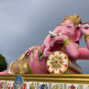 半日ツアーに参加しました。当日は私達二人だけでワゴン車でゆったり行けました。ピンクガネーシャお寺では 参拝の仕方も丁寧に教えていただき いい体験ができました。ガネーシャ以外にも 突っ込みどころ満載の像がたくさんあって 遊園地に来ているようでした。中心から かなり外れにあるので 半日で2箇所を効率よく回れて とてもいいツアーだと思います